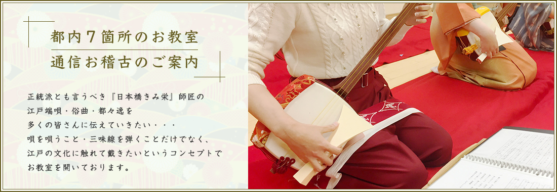 唄・三味線だけでなく、江戸の文化に触れて戴きたいというコンセプトでお教室を開いております。